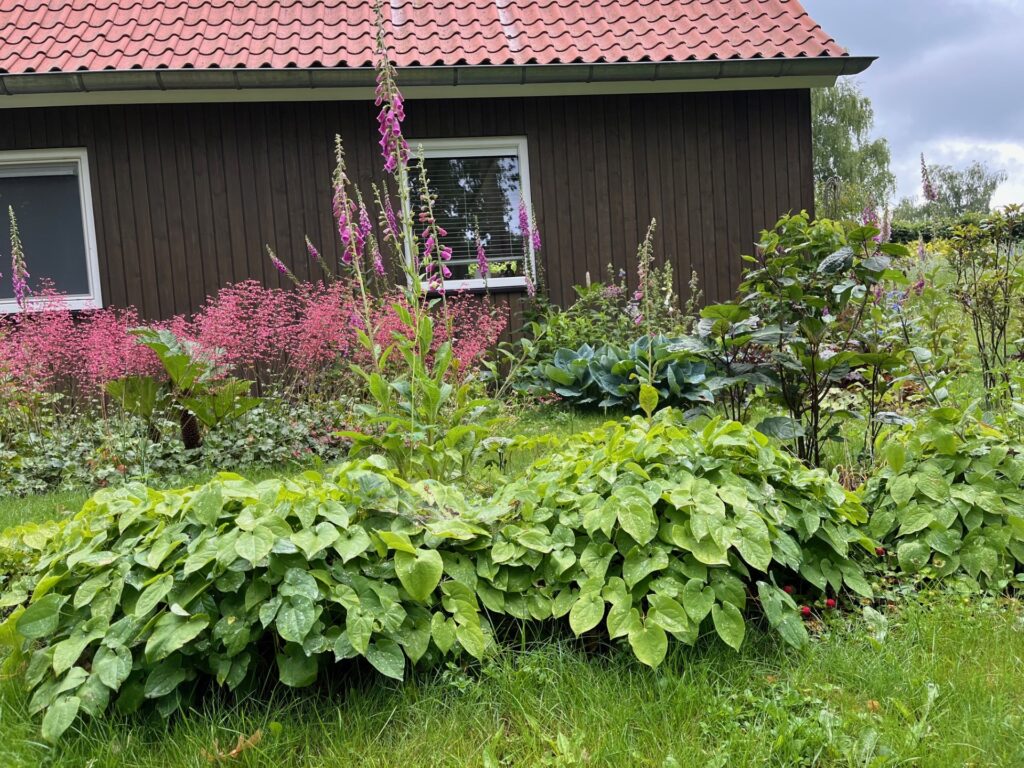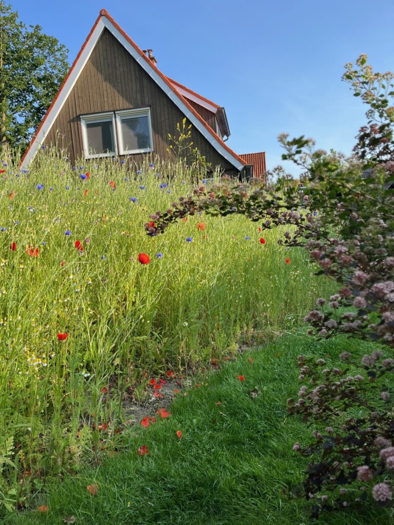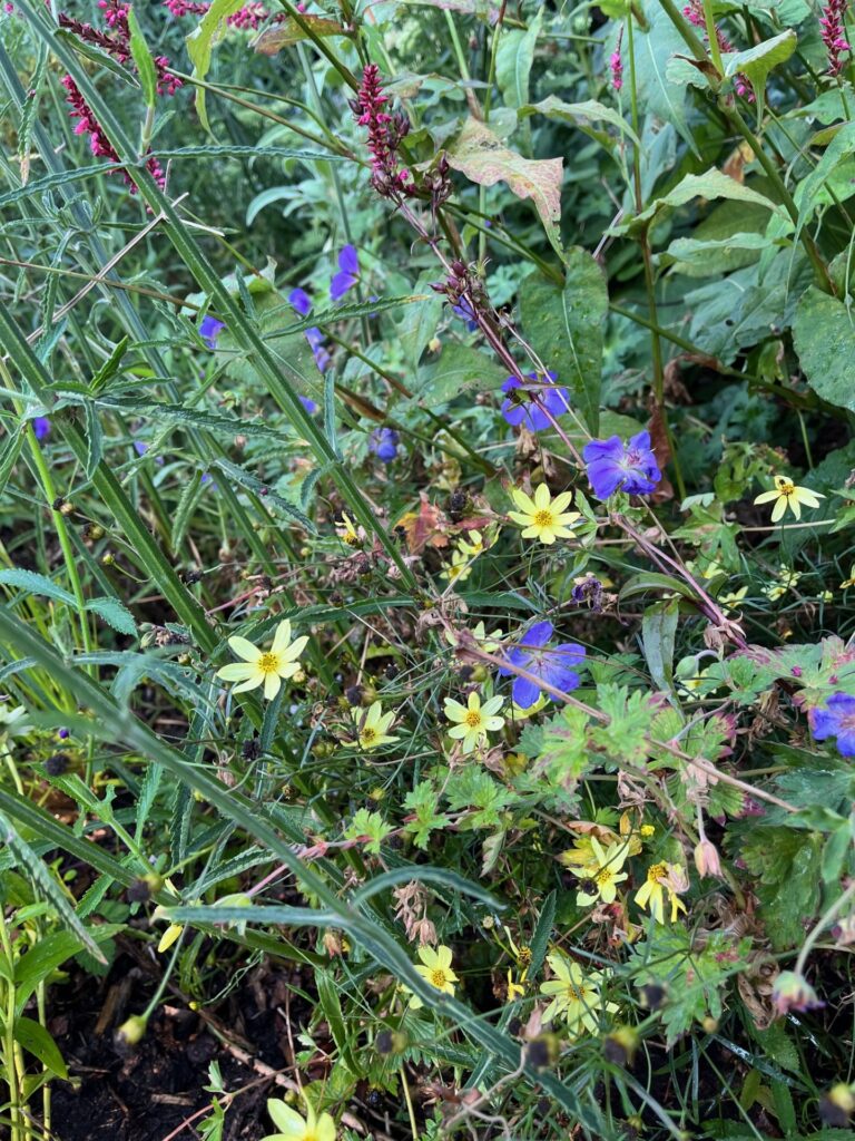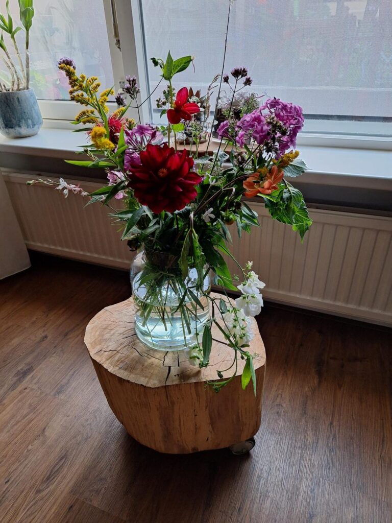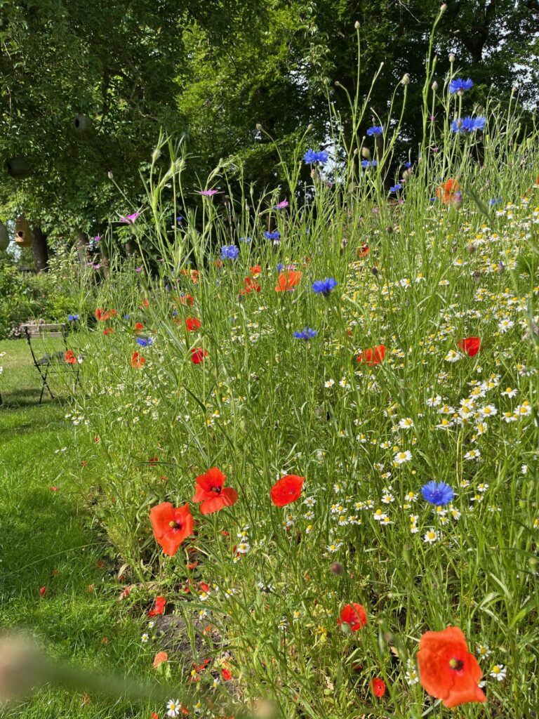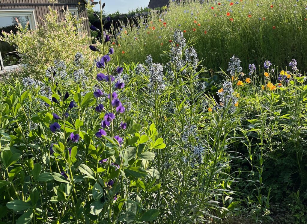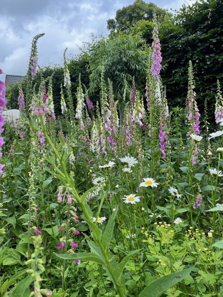 Op deze pagina staan foto’s van mijn eigen tuin. Het geeft een indruk van wat er is gaan groeien en bloeien en hopelijk nog meer tot groei en bloei komt. Het laat zien welke verrassende en onverwachte resultaten er zijn: van natuurlijke borders tot kikkers in de vijver en van plukbloemen tot bessen.